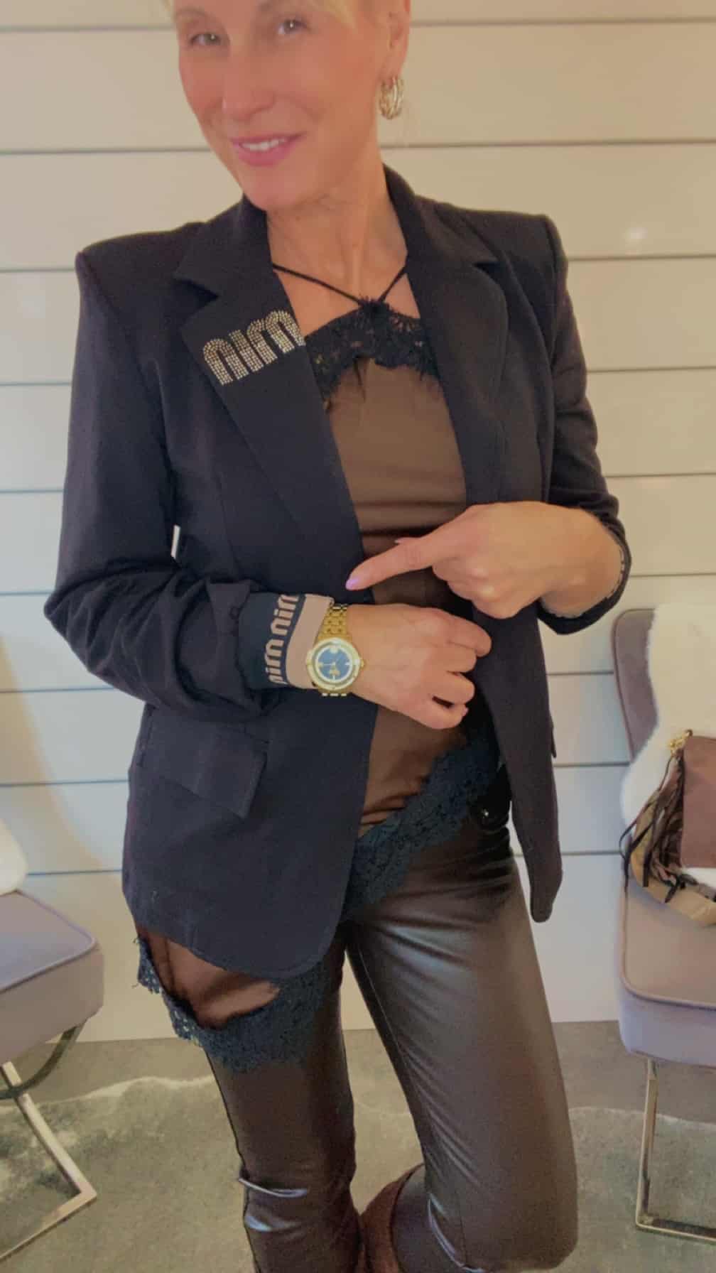 Blazer mit Glitzer Details am Kragen und Armabschluss