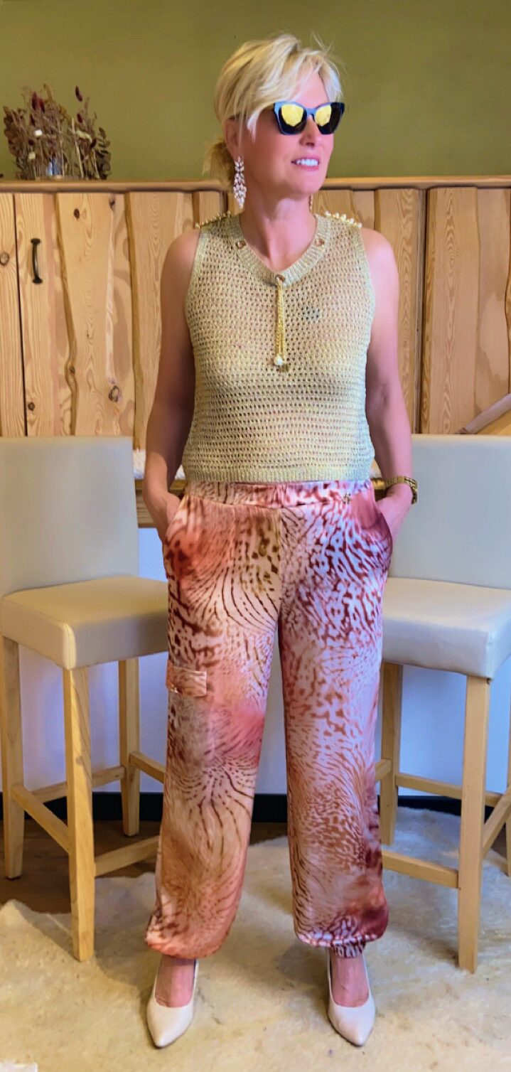 Glänzendes Strickmaterial in Gold oder Schwarz