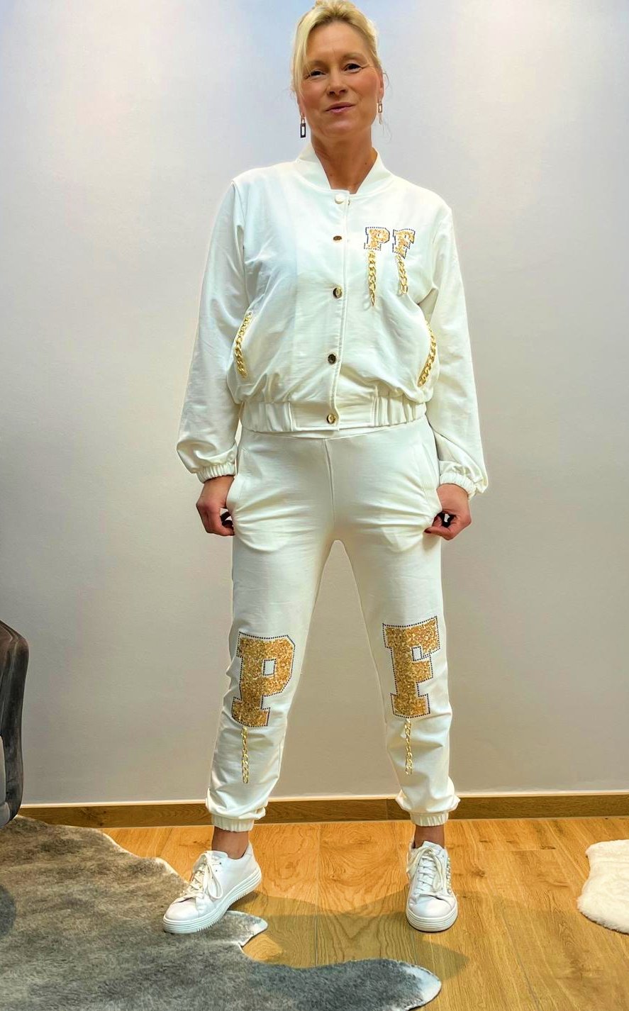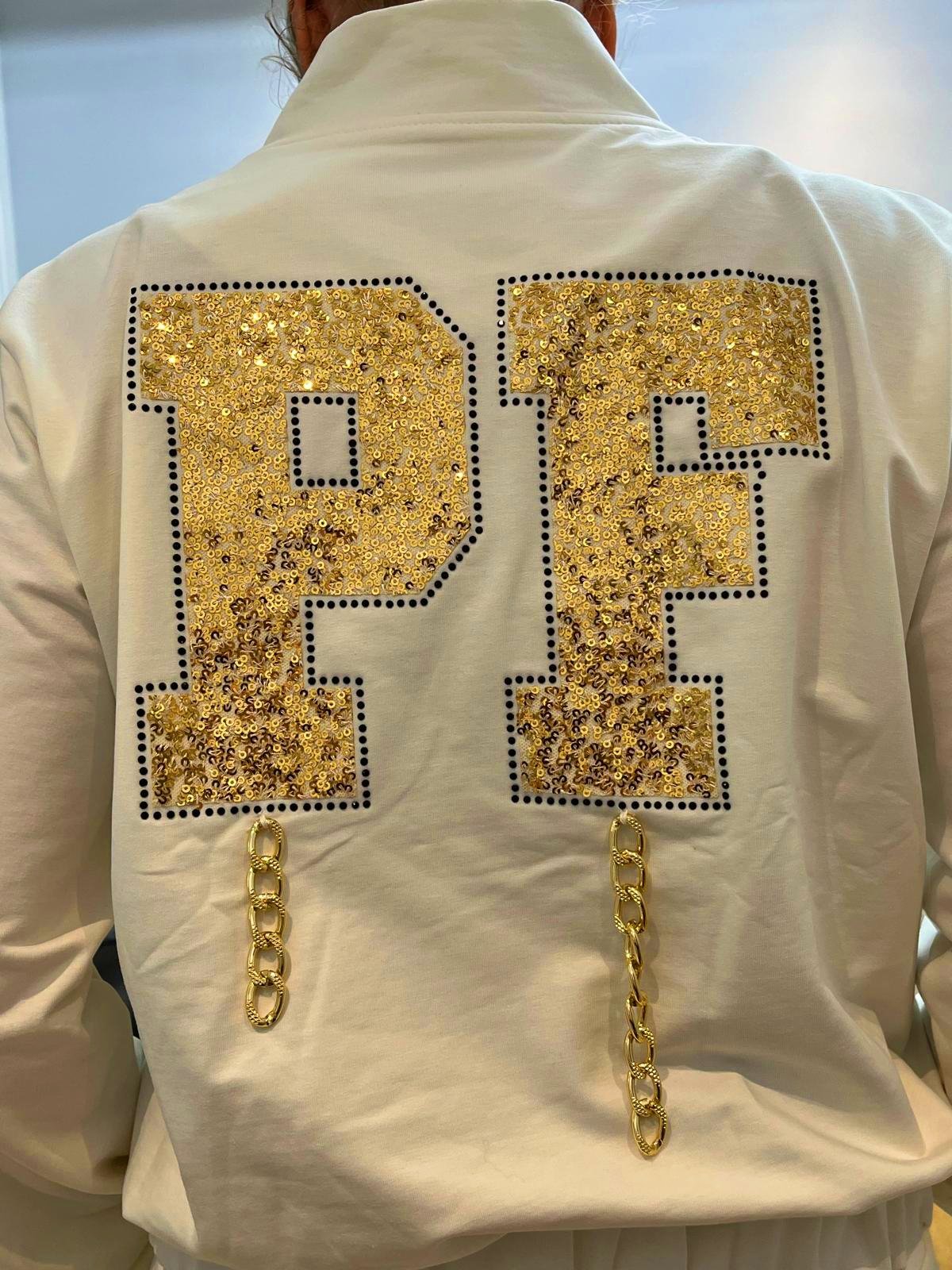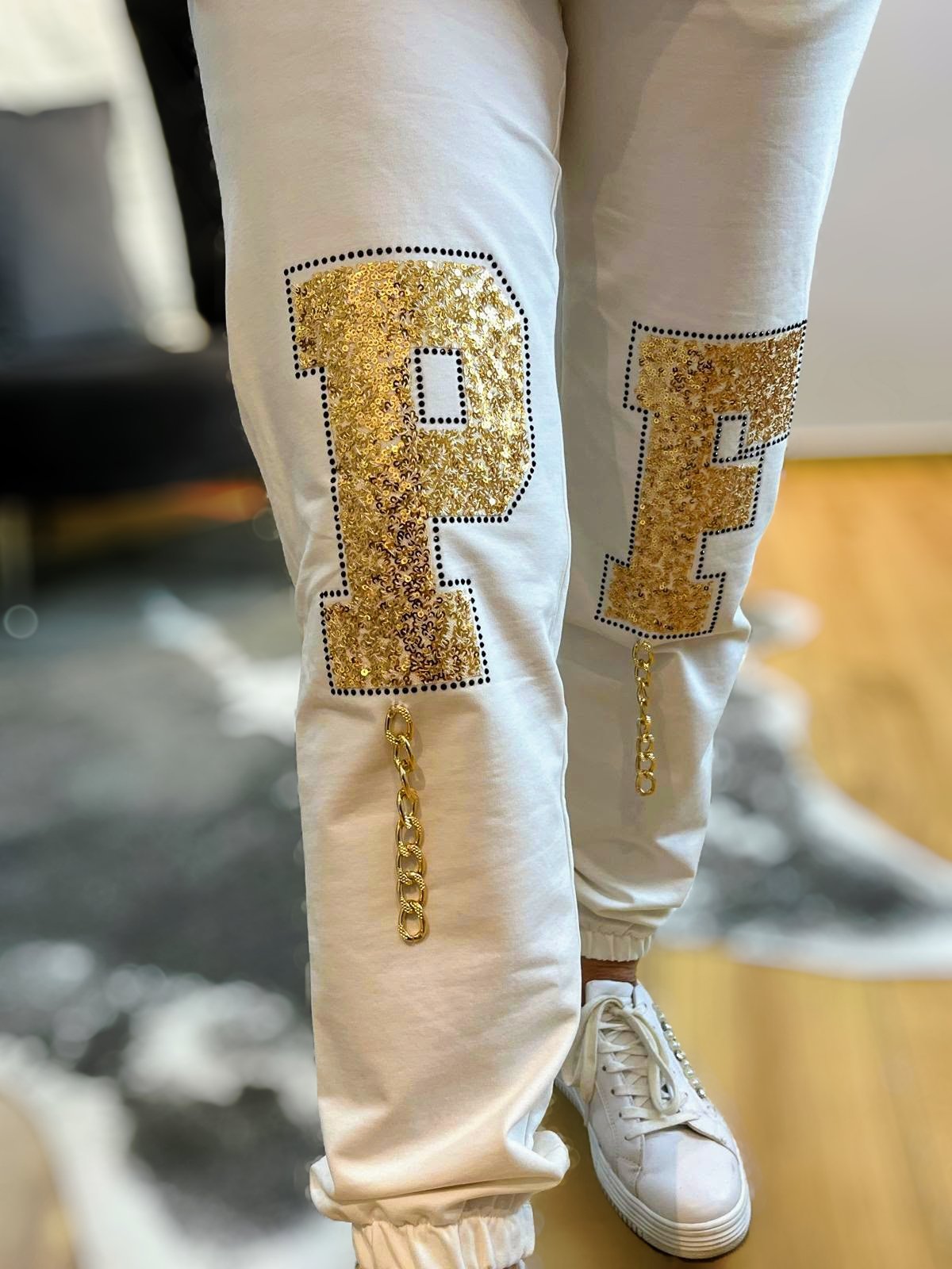 • Buchstaben in Glitzer Gold auf den Beinen Vorderseite