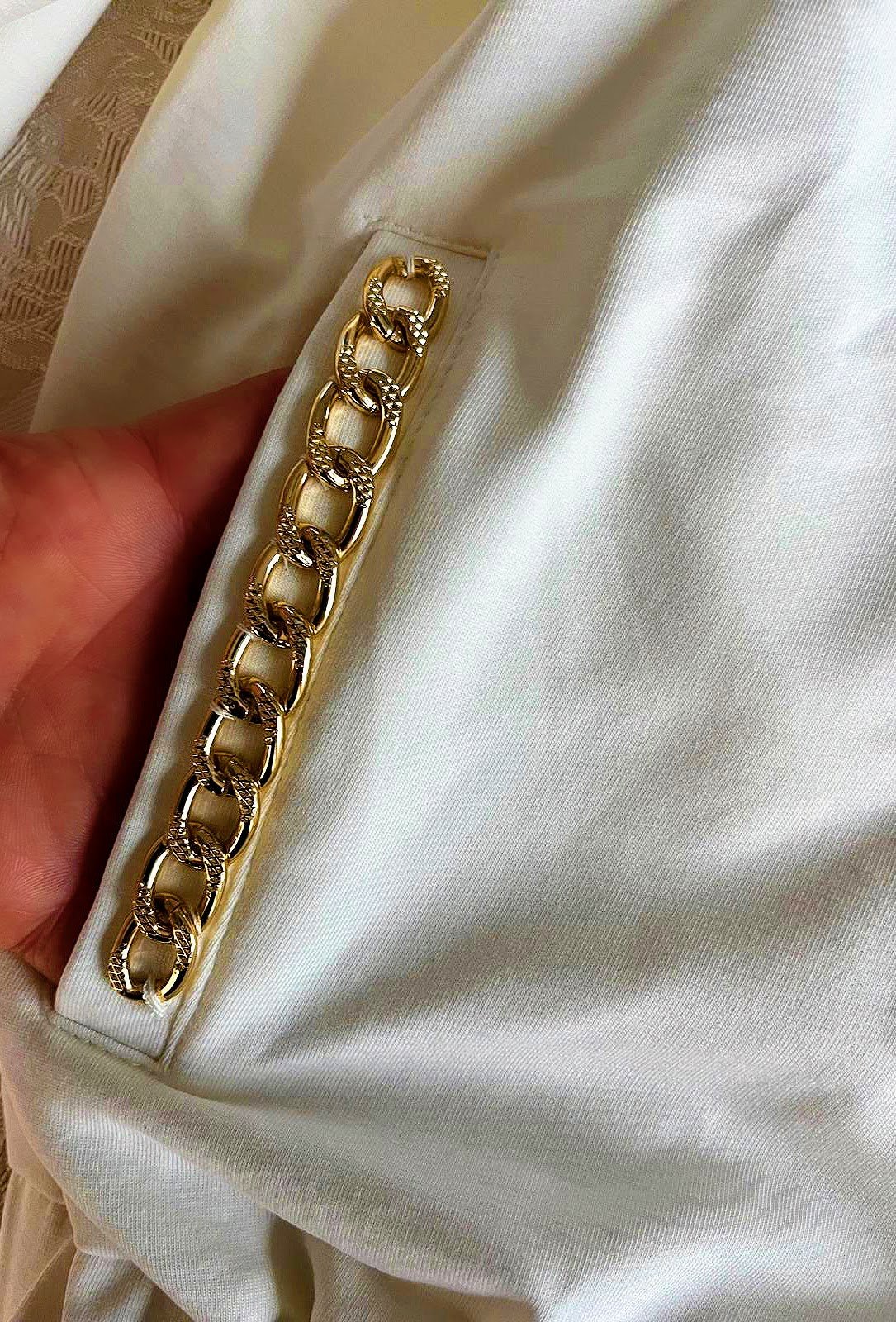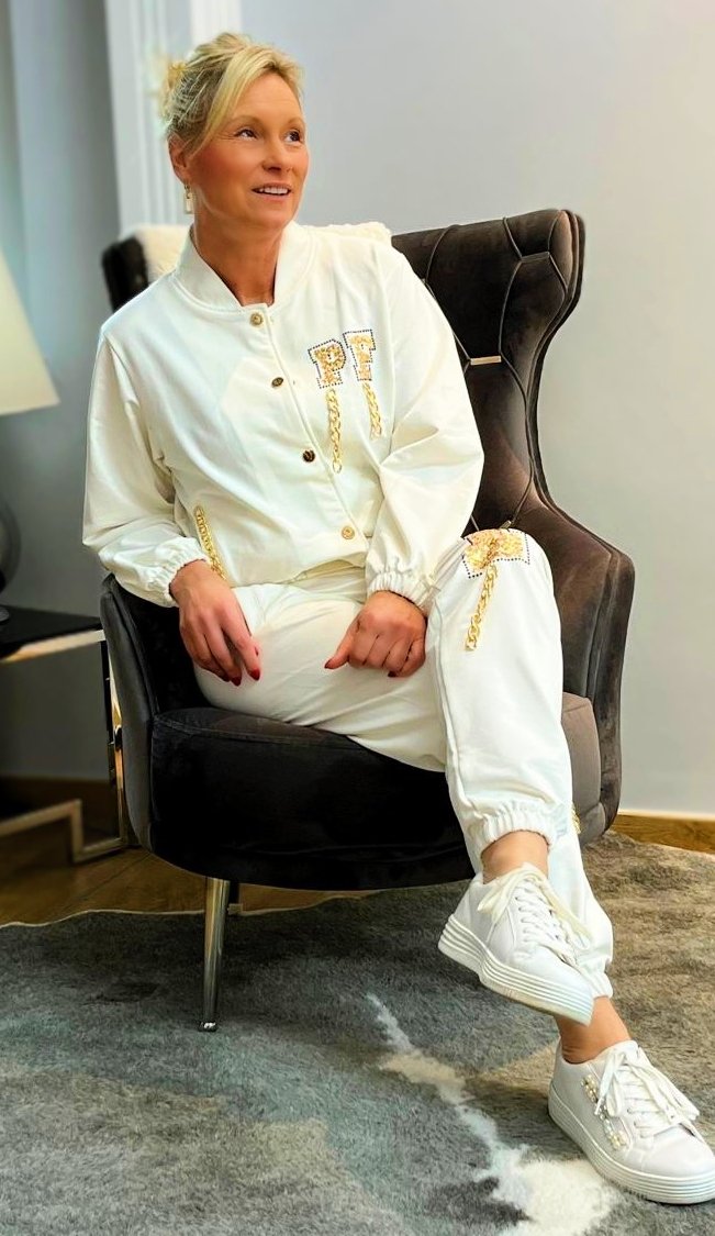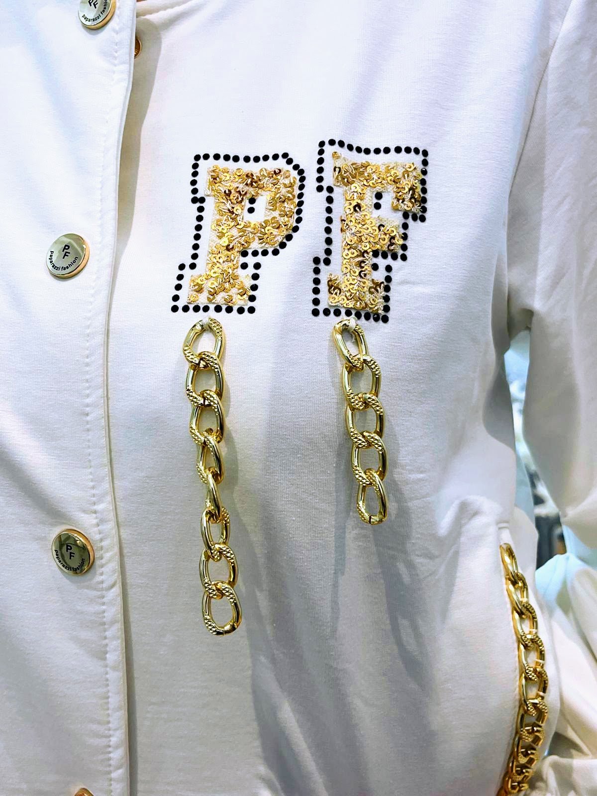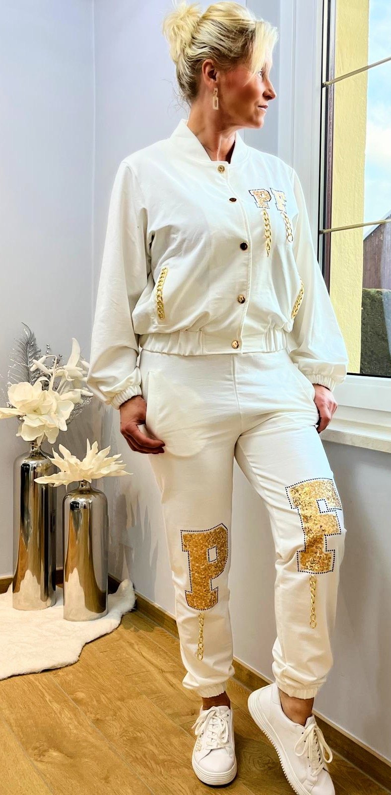 • Buchstaben in Glitzer Gold auf den Beinen Vorderseite