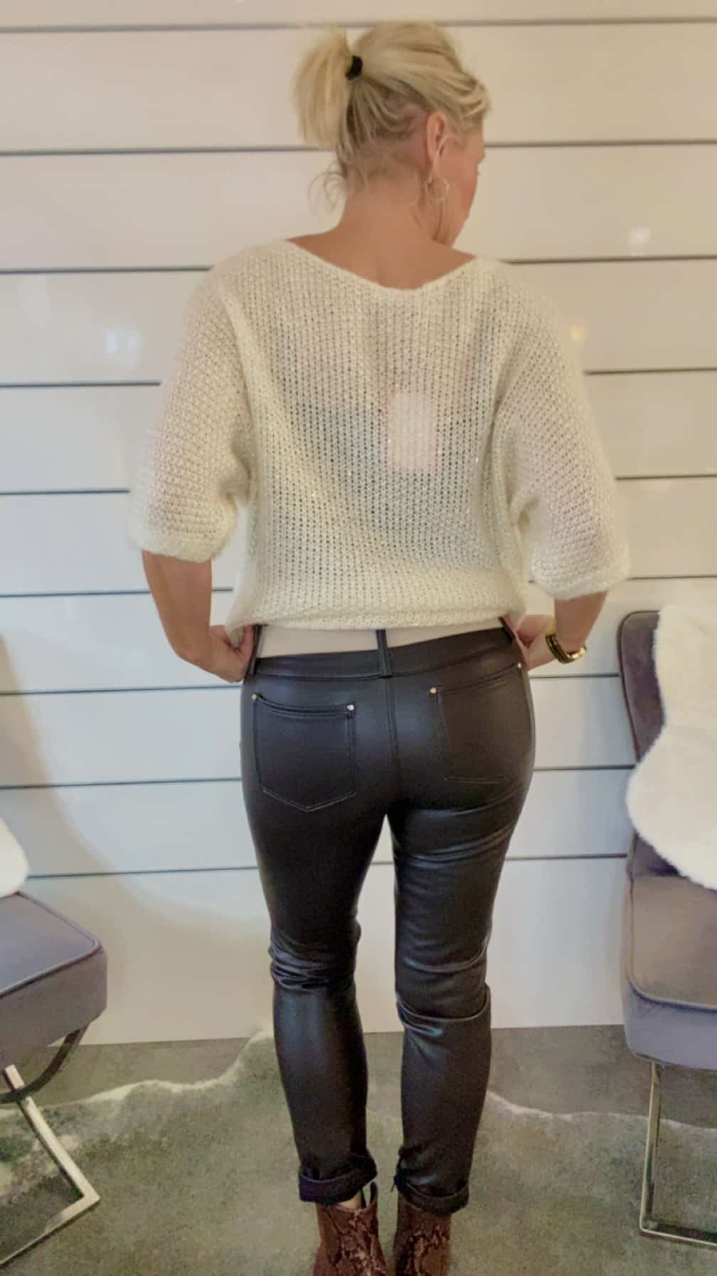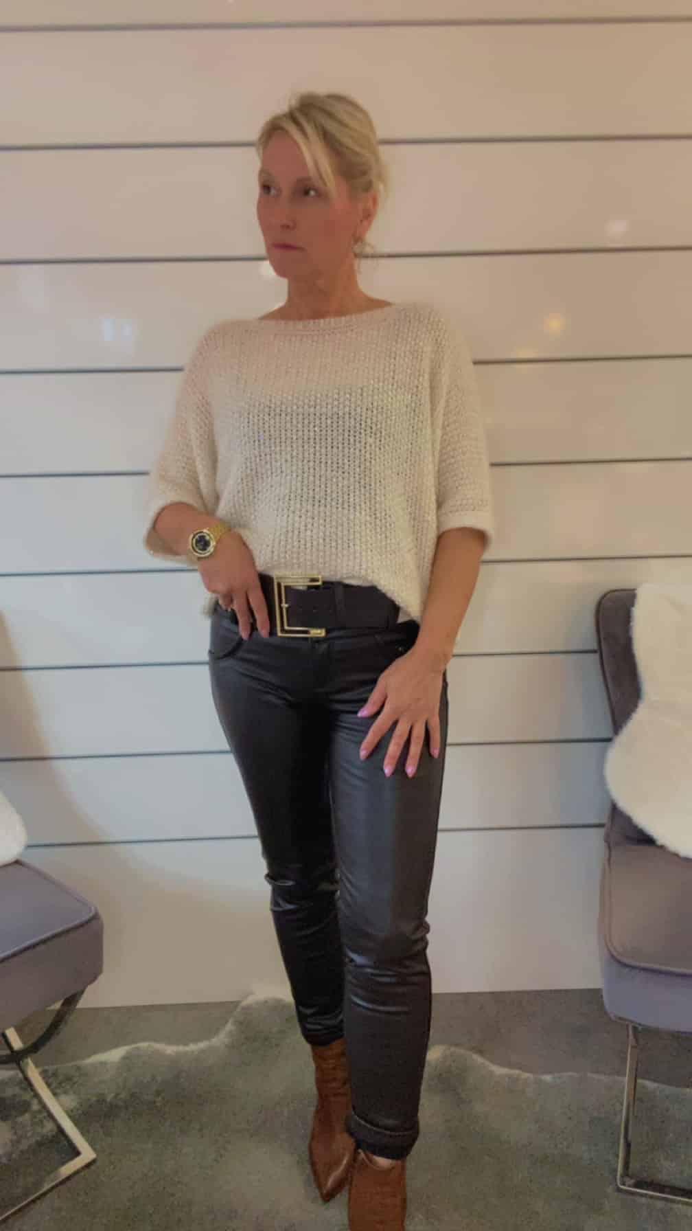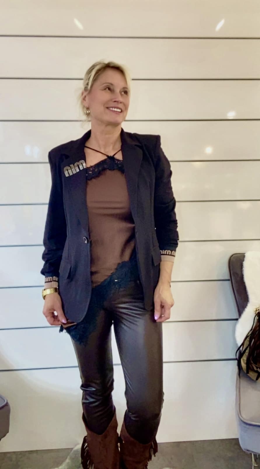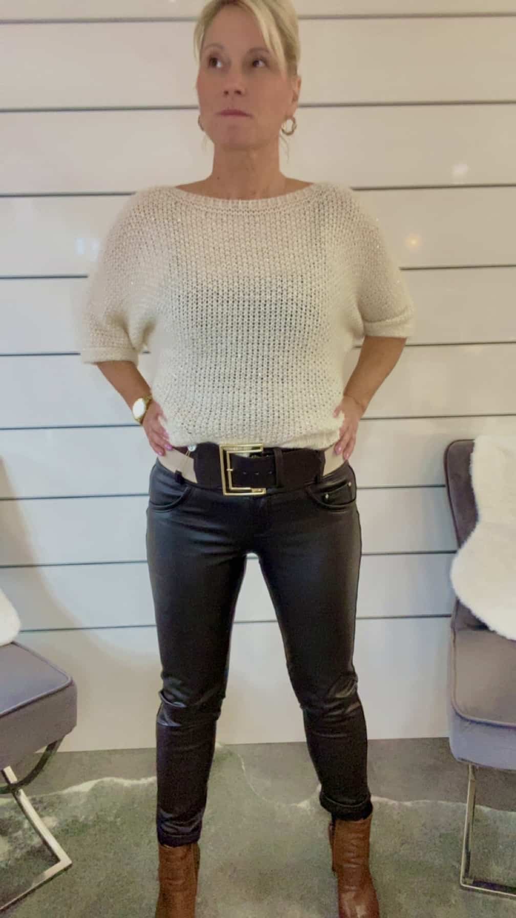 Kunstlederhose in Schokobraun mit breiten Gürtel