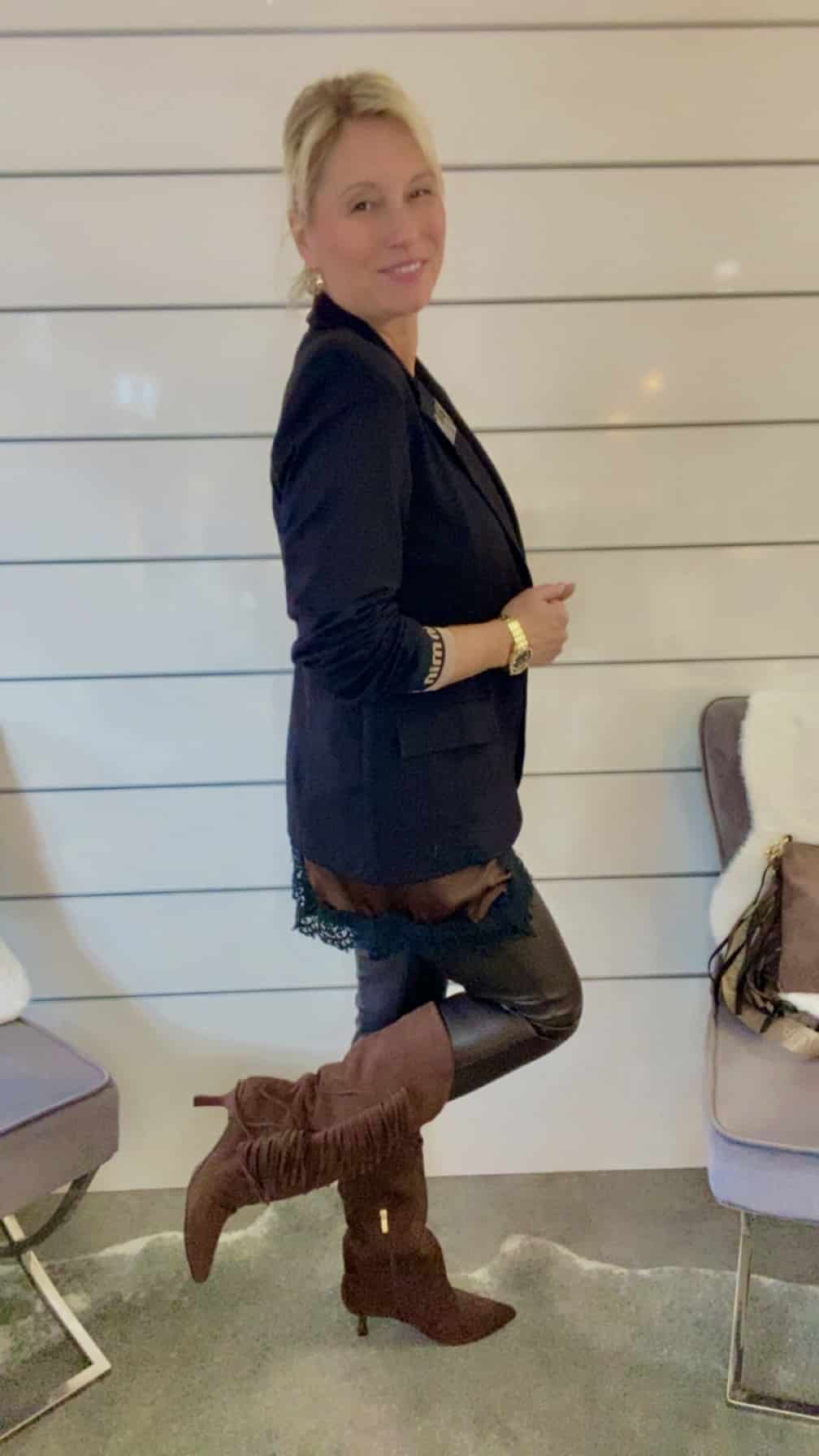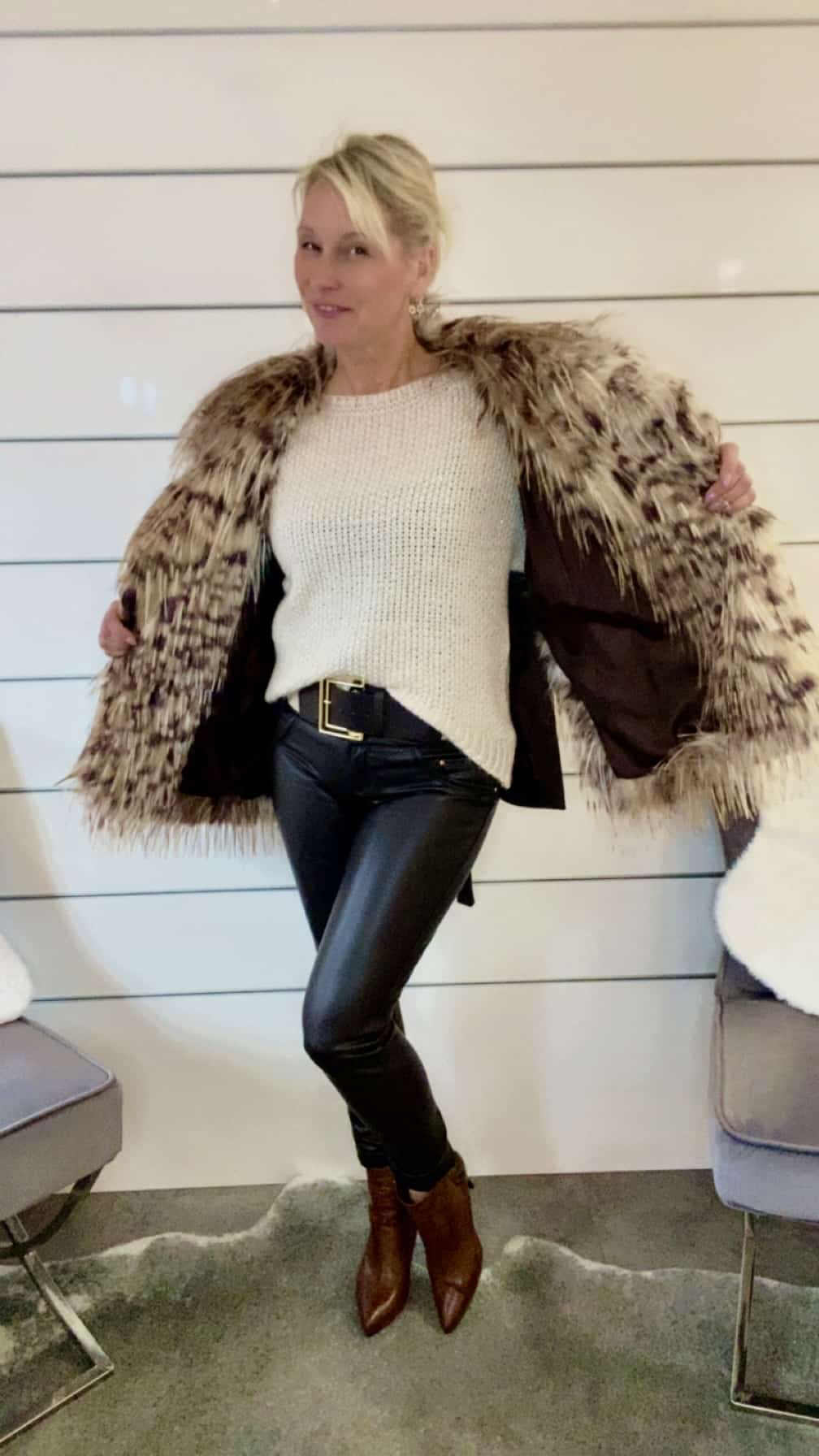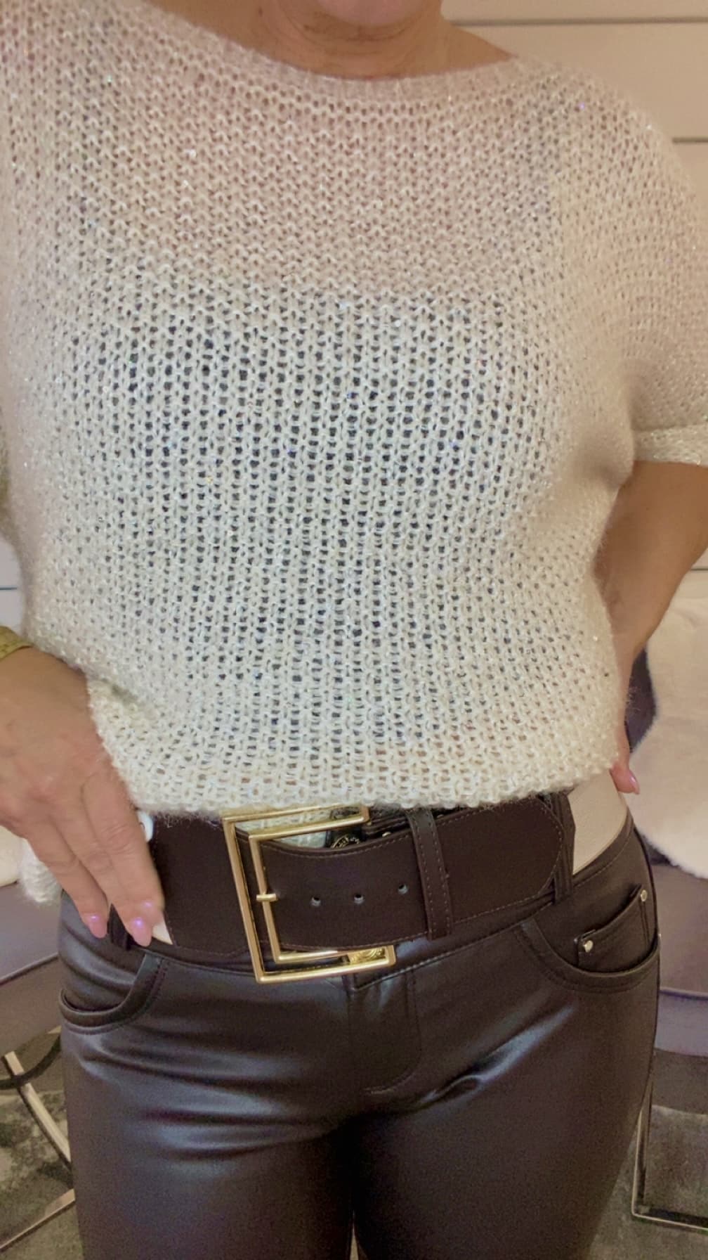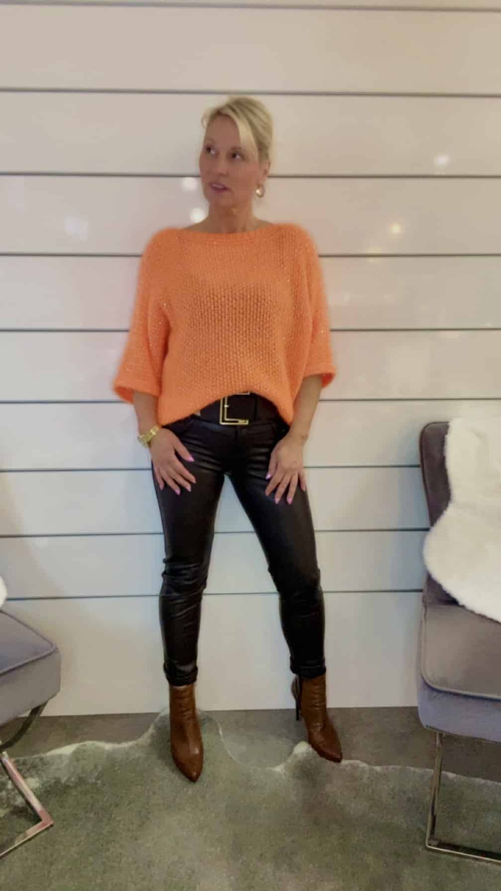 Kunstlederhose in Schokobraun mit breiten Gürtel