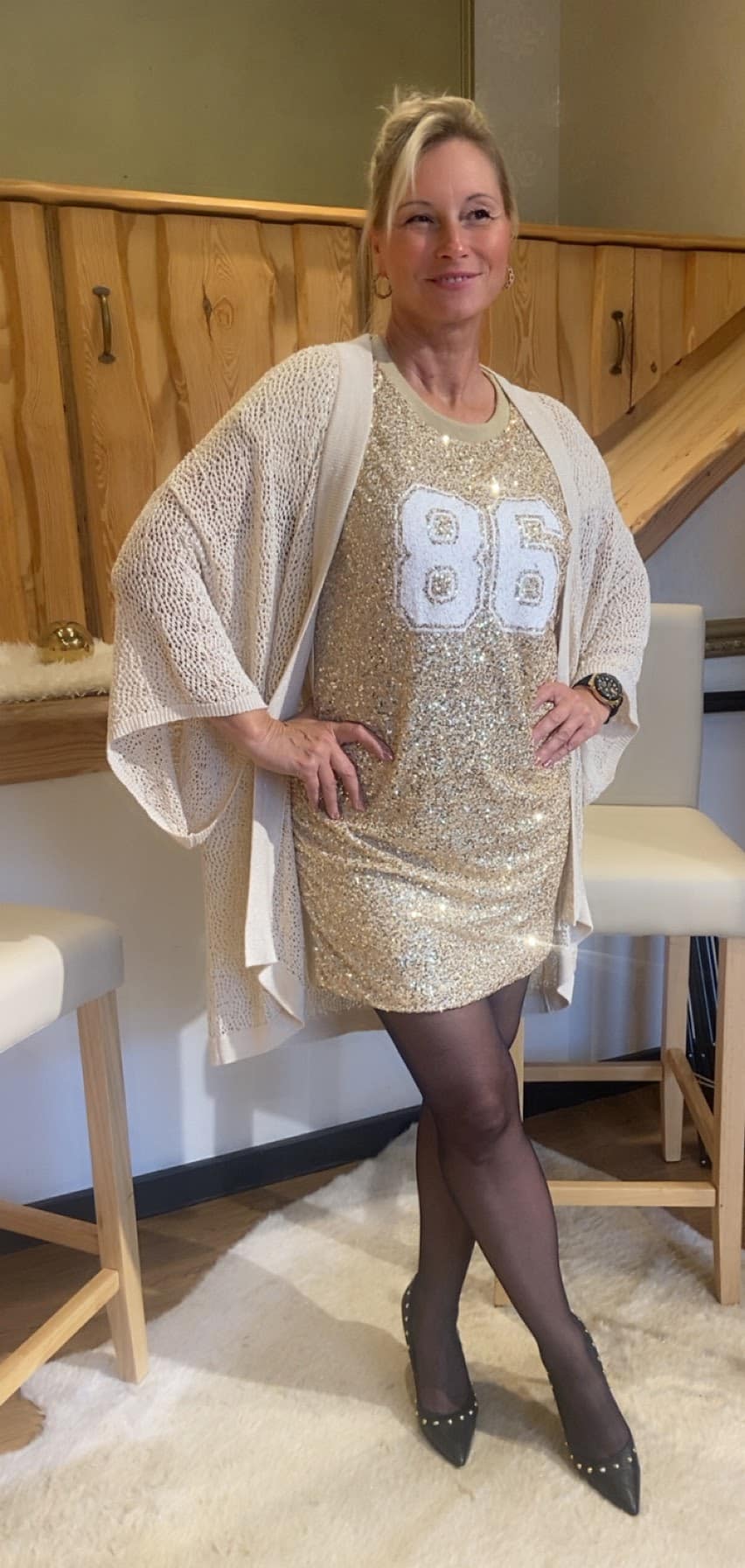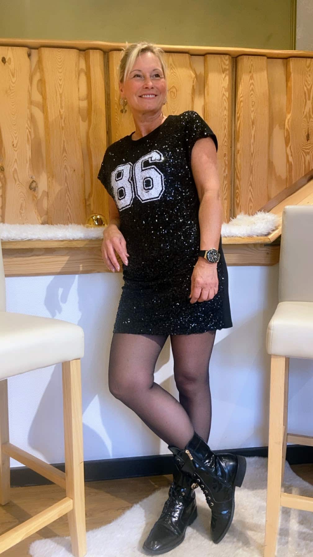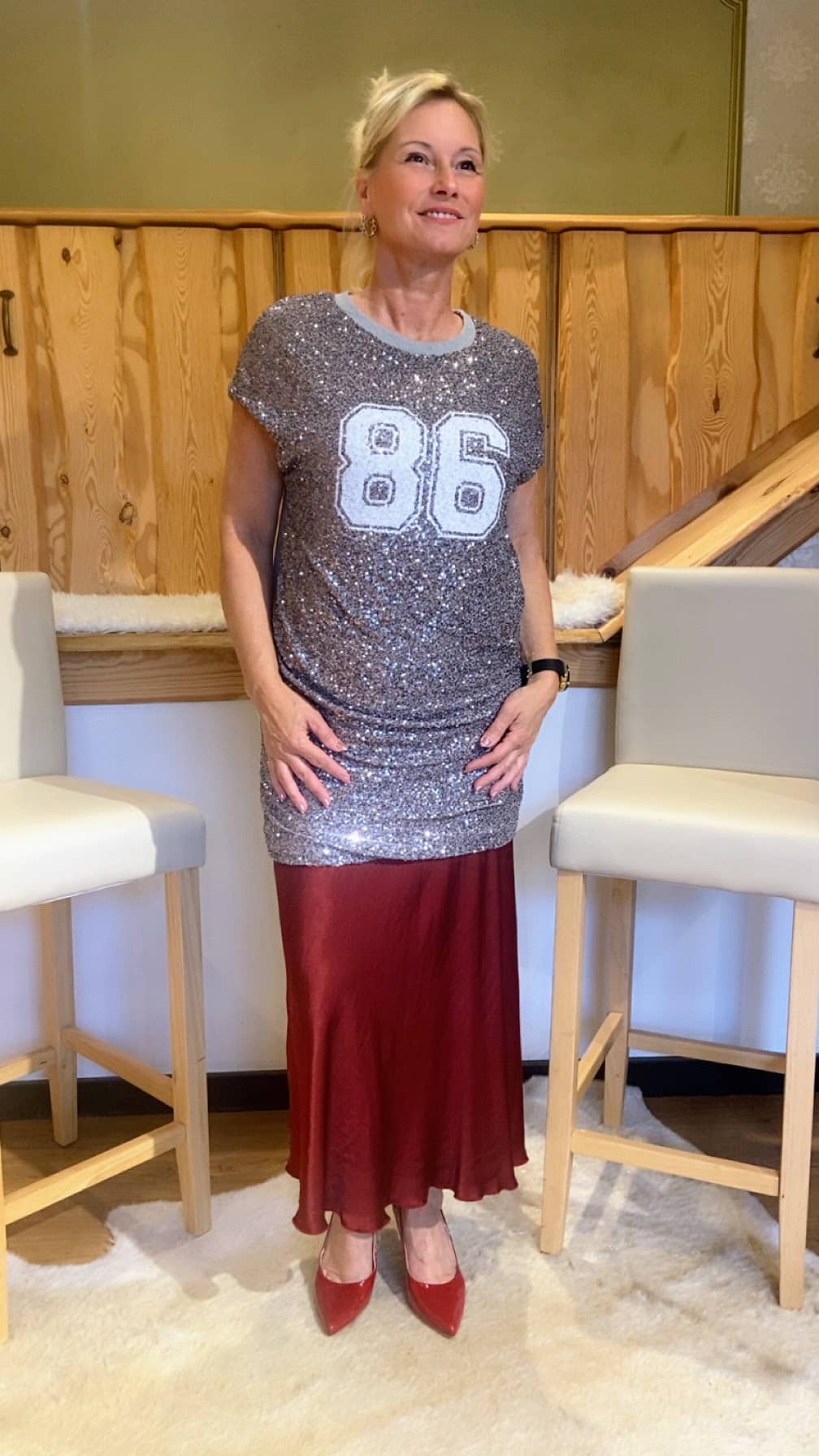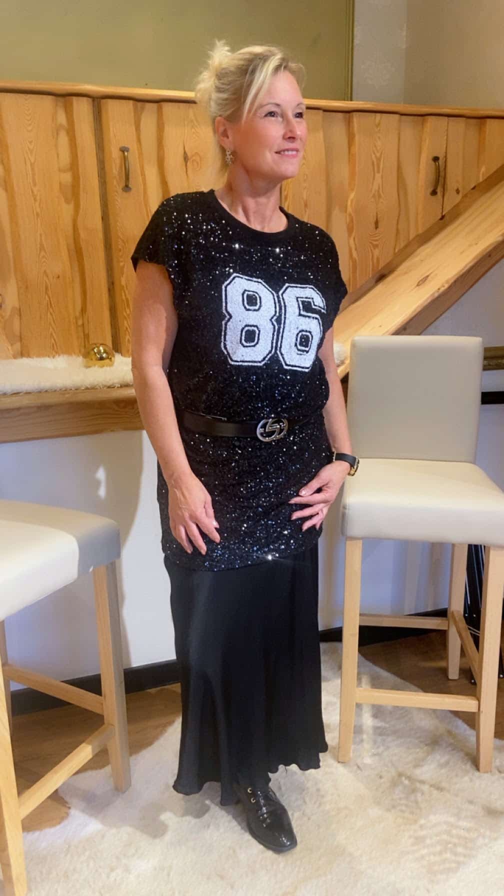 Vorderseite mit coolem Pailettendruck und einer 86 in weiß