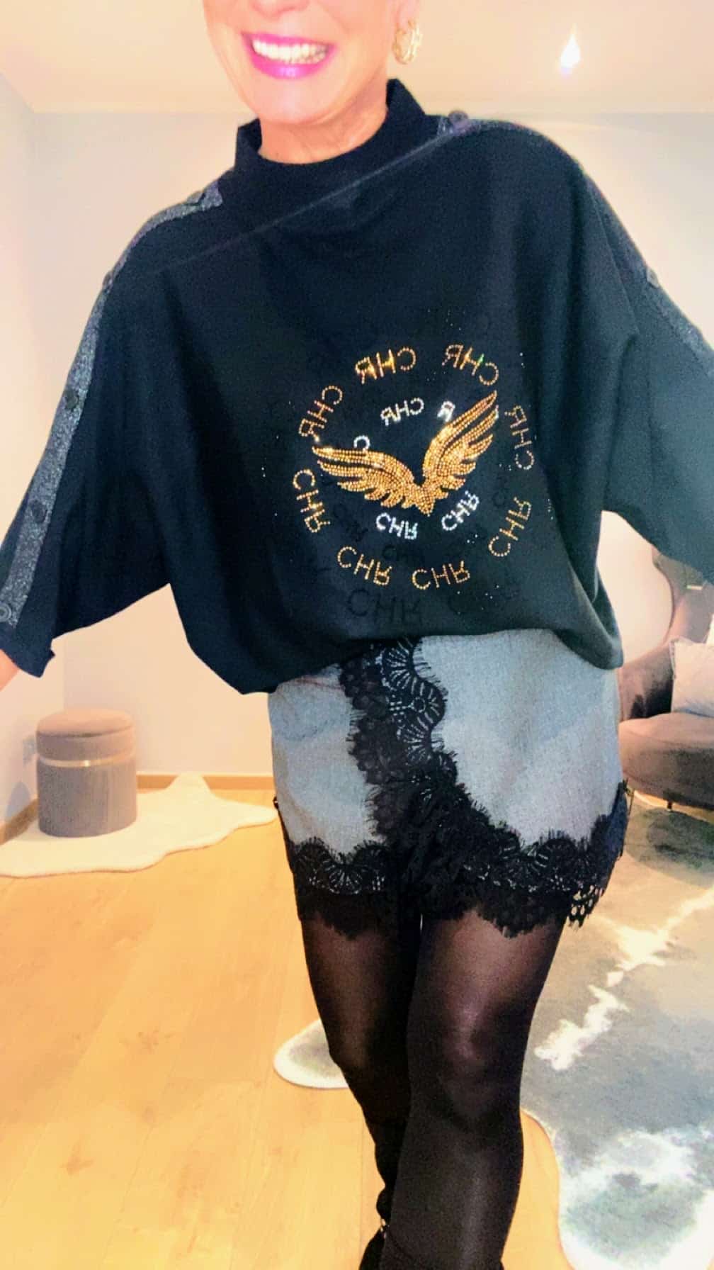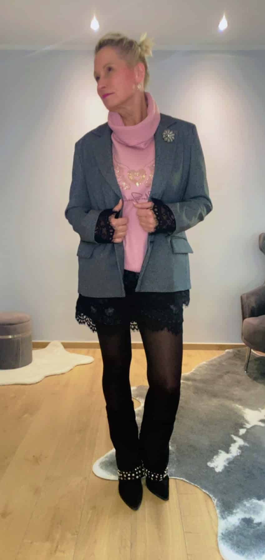 Rock in Grau mit raffinierter schwarzer Spitzenborte