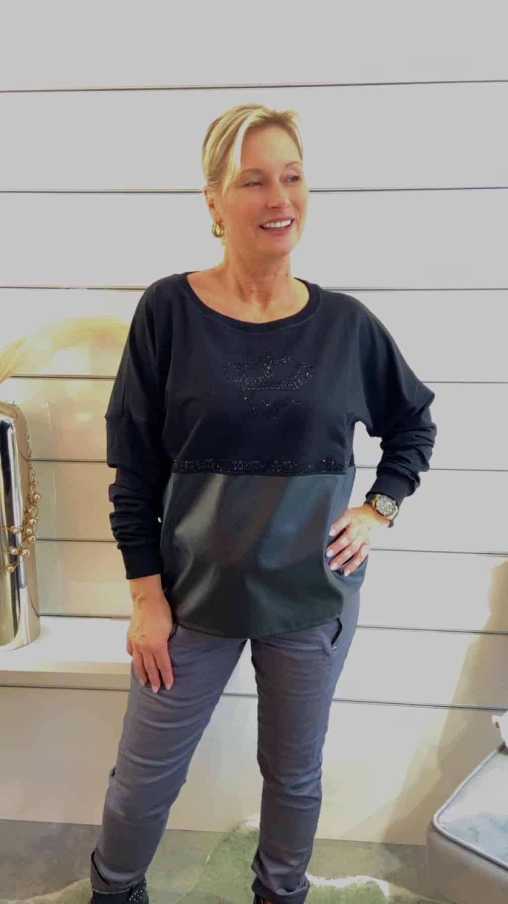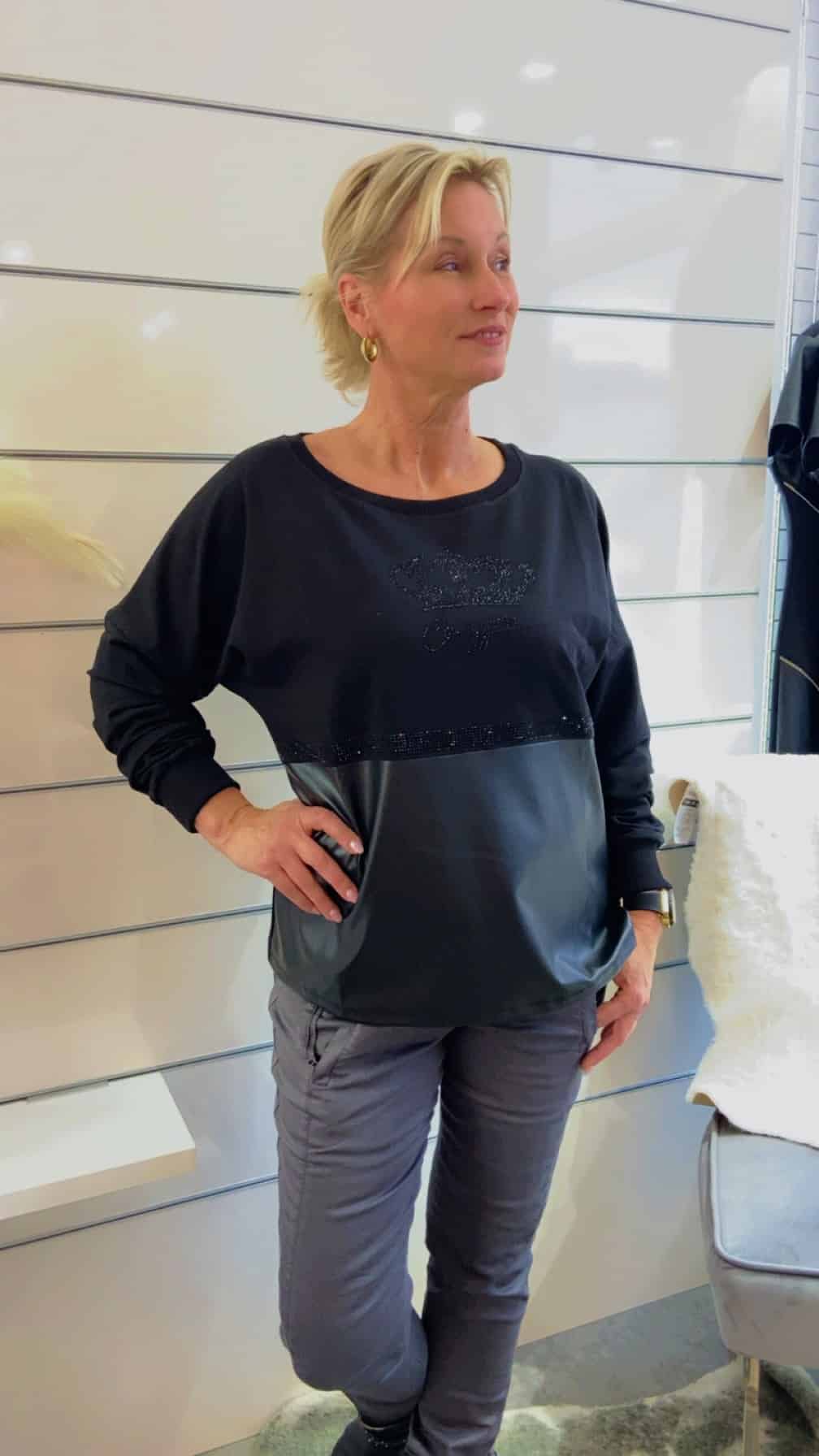 Sweatshirt mit Lederoptik – Einsatz