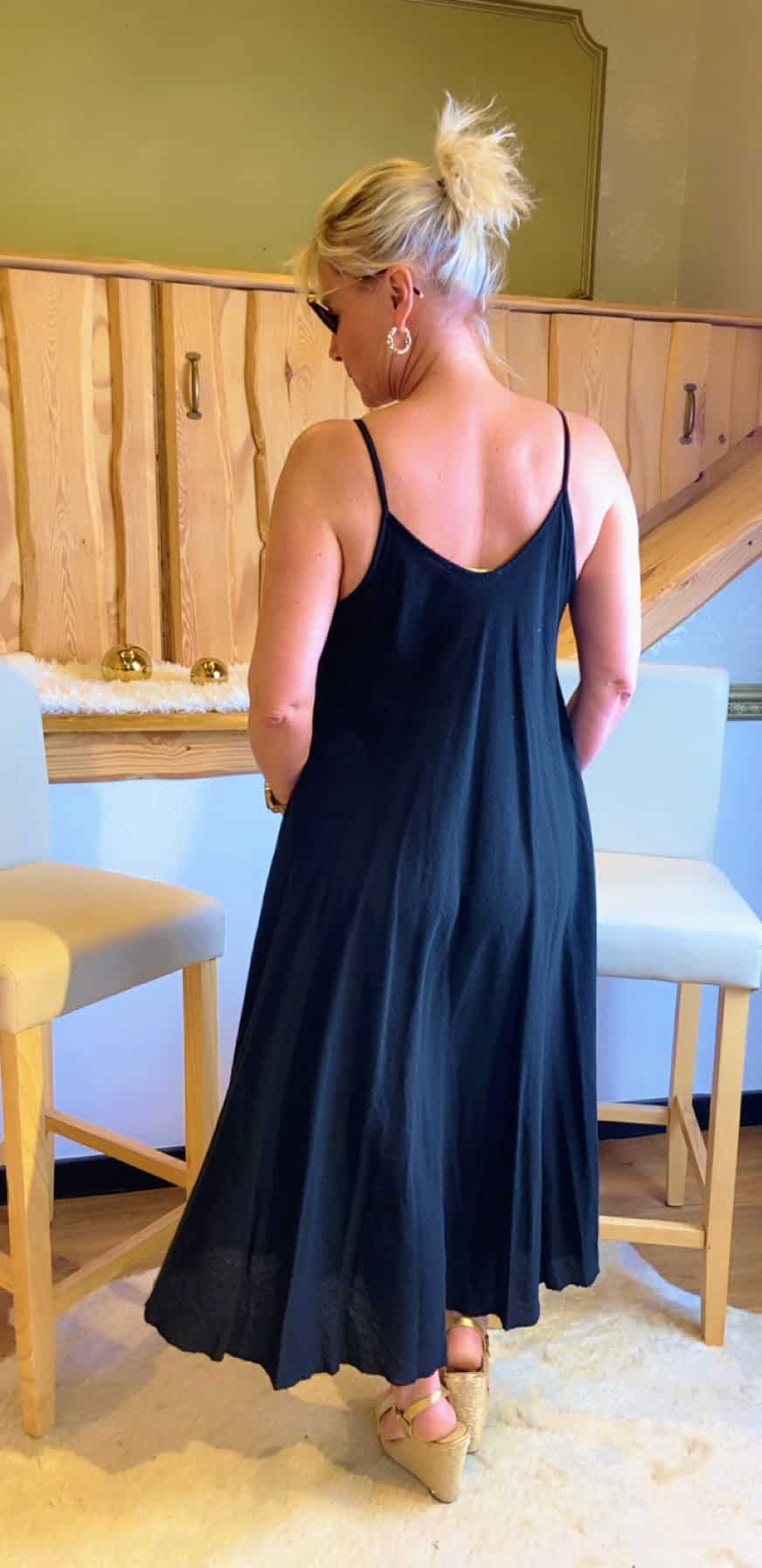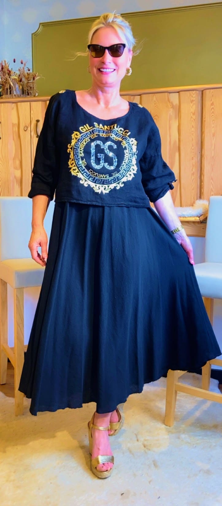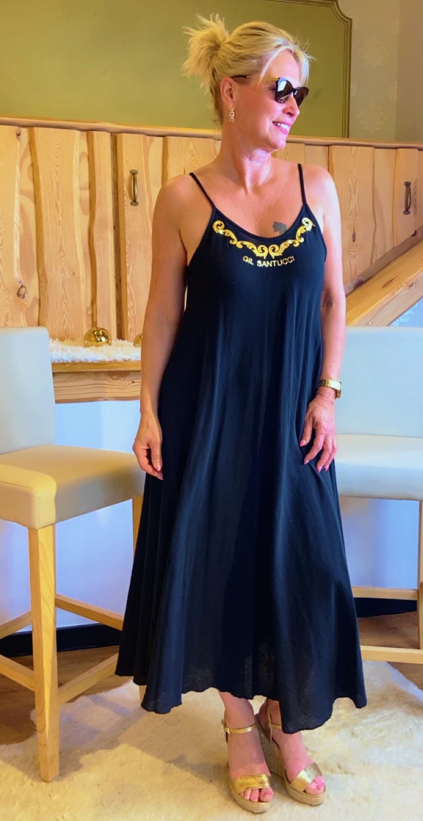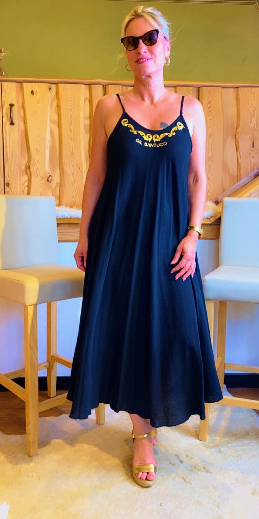 Kleid – Rundhalsausschnitt mit goldene Ornamenten eingefasst