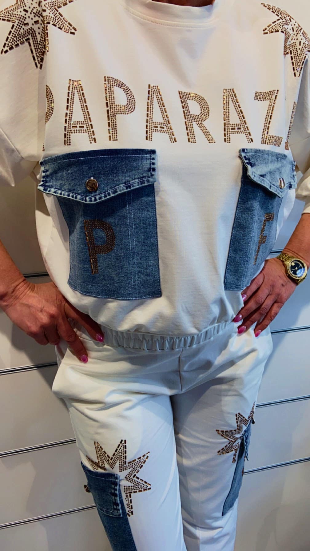 Sweatshirt mit aufgestzten Taschen in Jeansblau